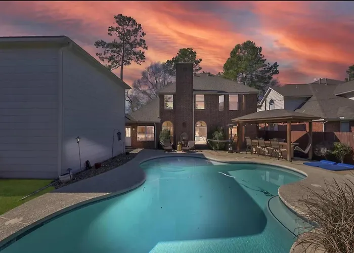 **Luxurious Tomball Getaway** bietet eine Oase der Entspannung und des Komforts inmitten der lebhaften Stadt Tomball. Hier verschmilzt elegante Architektur mit modernem Design, um Gästen ein unvergessliches Erlebnis zu bieten. Die stilvollen Räumlichkeiten sind ideal für eine ruhige Auszeit oder einen geschäftlichen Aufenthalt.